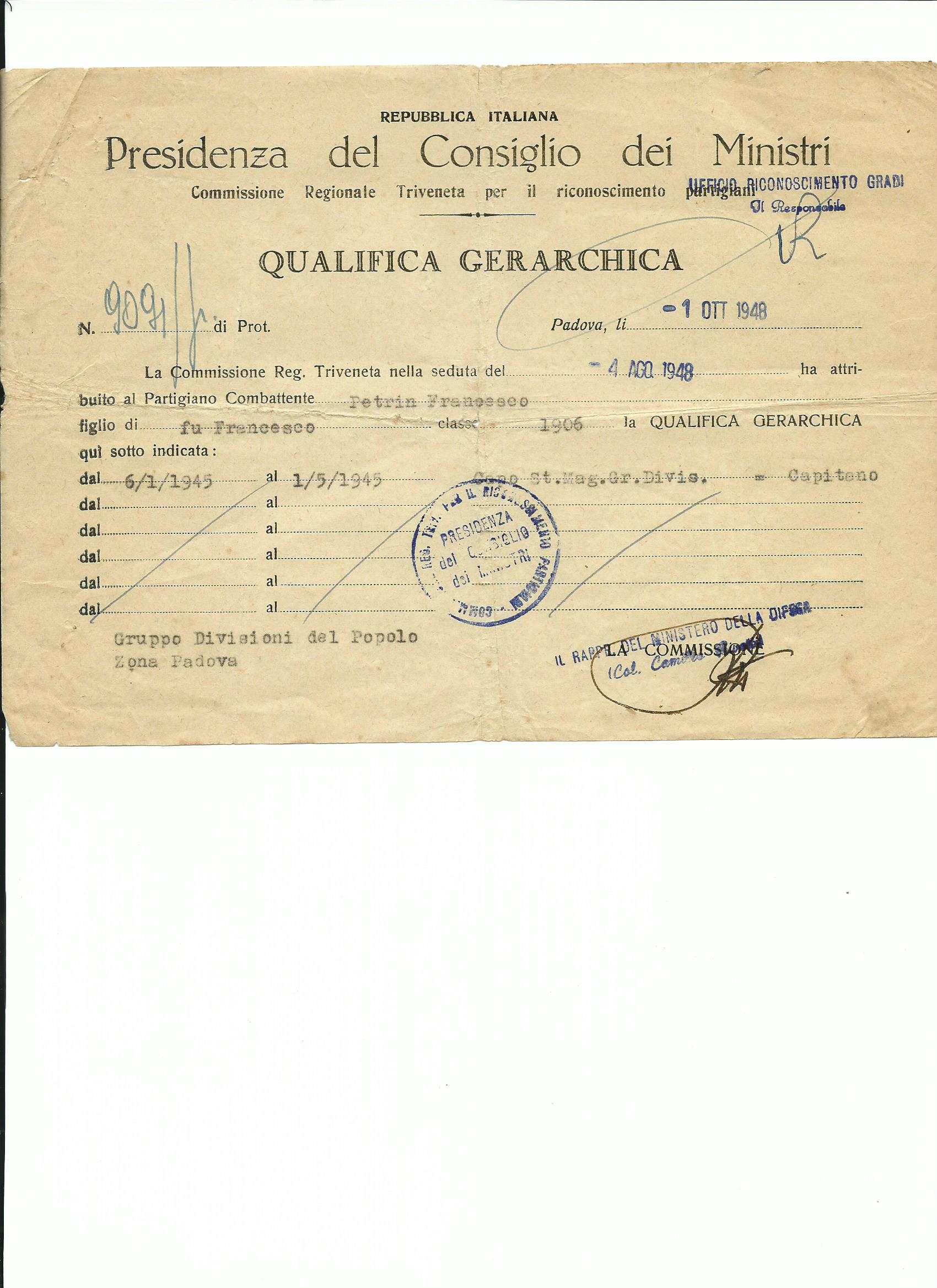 Queste ultime che avevano conquistato finalmente il diritto sul campo di partecipare in massa al referendum istituzionale del 2 giugno. È stata una lotta al nazifascismo espressa da moltissime forze politiche: non solo quelle socialista e comunista, ma anche i repubblicani e i liberali. È stata soprattutto la liberazione voluta dagli umili, da coloro che hanno combattuto per un ideale e che, dopo la guerra, avevano deciso di proseguire la loro vita normalmente. Tutti coloro che hanno lottato e sofferto sulle montagne e sulle pianure d’Italia contro i tiranni sono considerare i padri e le madri della Repubblica. E Francesco Petrin, un partigiano veneziano del Partito Liberale, è uno di questi.
