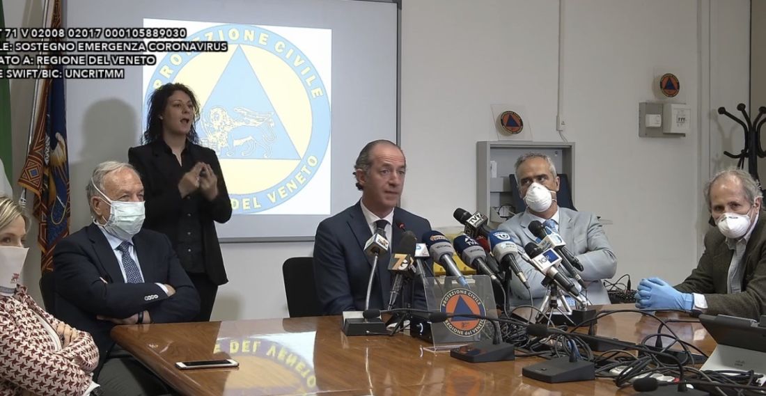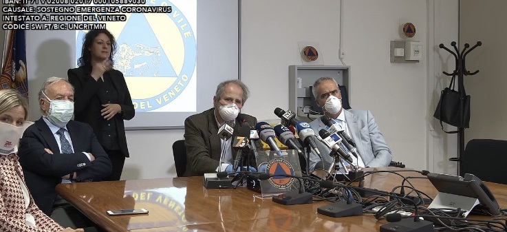 Il presidente della regione Veneto Luca Zaia iniziava la prima della lunga serie di conferenze nella sala stampa allestita all’Unità di Crisi nella sede regionale della Protezione Civile, a Marghera, e l’Italia imparava a conoscere anche il piccolo comune di Vo e il professore Andrea Crisanti.