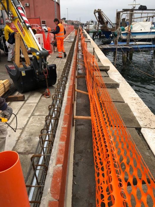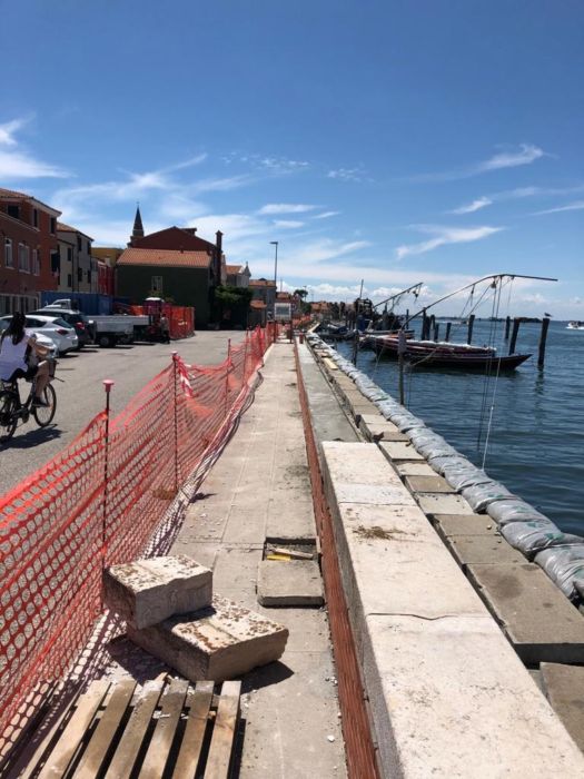 A Pellestrina i lavori di rialzo e di impermeabilizzazione del muretto che separa la banchina dalle abitazioni è attualmente in corso. Sarà ripristinato anche un tratto di 1 km del muro realizzato negli anni ’90 per proteggere l’isola.