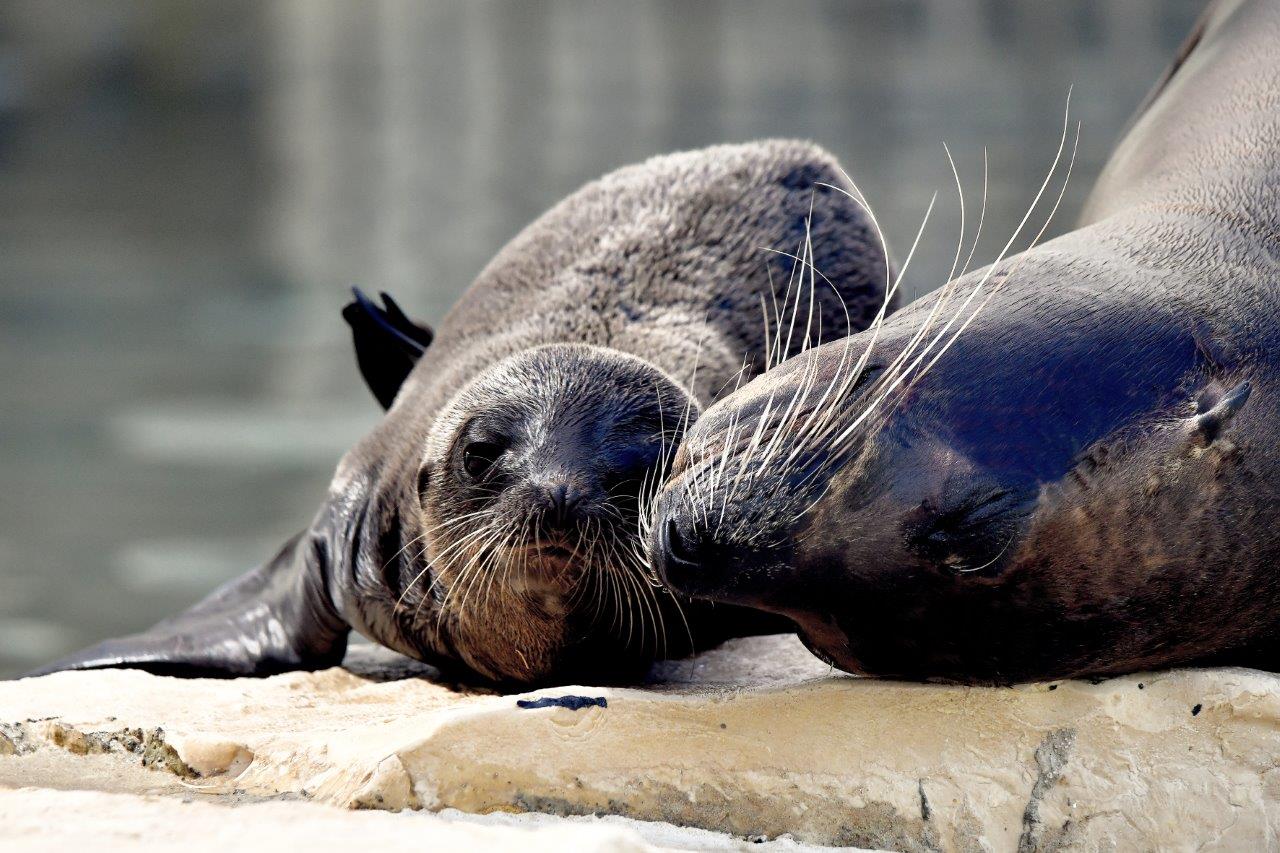 La mamma e il cucciolo di otaria al Bioparco di Roma (ph. Massimiliano Di Giovanni – Archivio Bioparco)