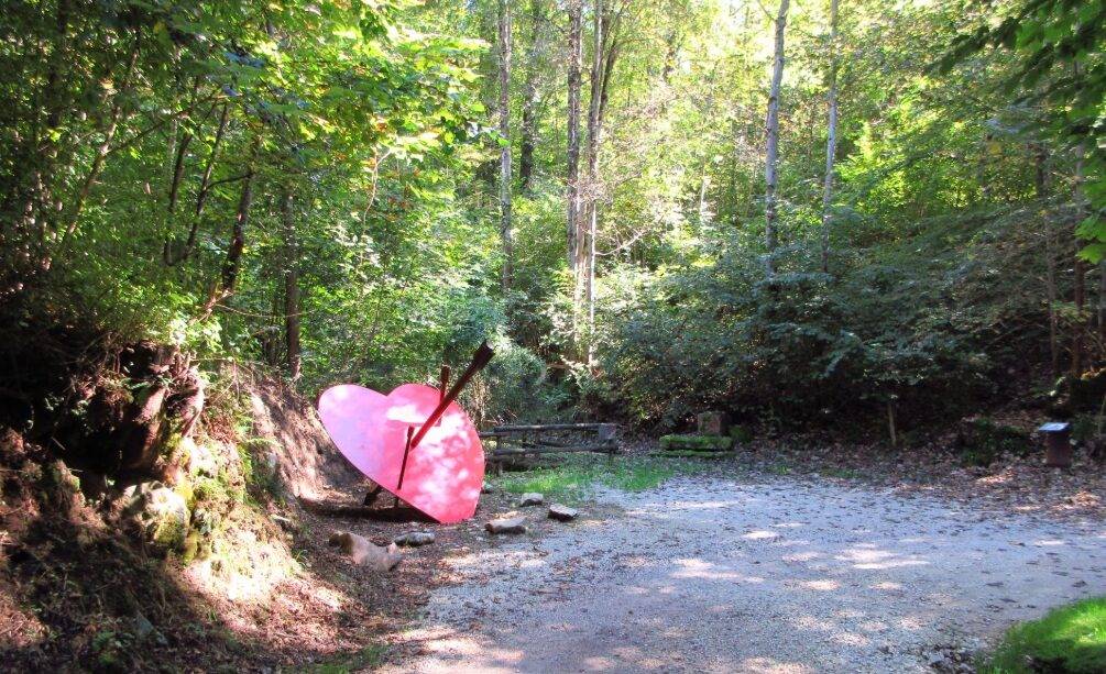 L’idea alla base delll’opera è quella di un luogo speciale dove le coppie di innamorati possono sedersi e dichiararsi amore eterno. Non mancano cuori in metallo con citazioni di poesie, il tutto immerso in un incantevole scenario naturalistico.