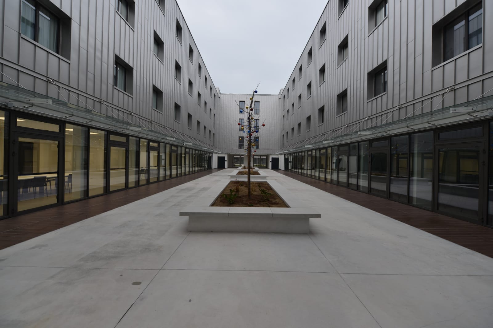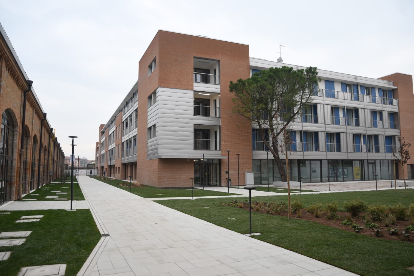 Lo studentato è composto da un complesso di 3 edifici (“Cubo”, “Parallelepipedo” ed “Edificio Sud”), con spazi comuni pari ad un terzo delle superfici complessivi.