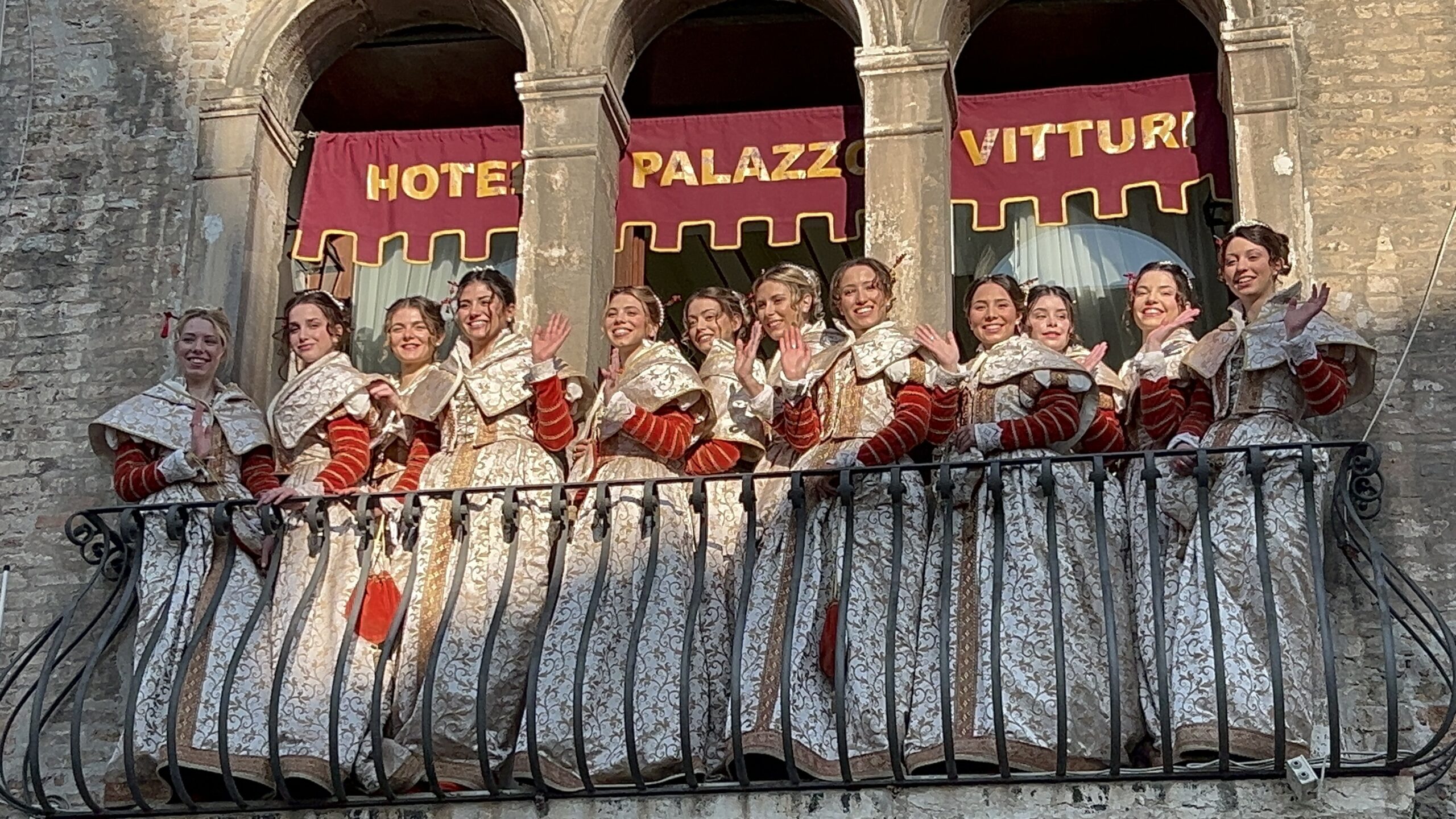 Nella Venezia dell’entroterra, a Chirignago, il tradizionale appuntamento con il “volo della maschera” dal campanile della frazione si è invece accompagnato con l’arrivo delle 12 “Marie” che aspirano a essere eletta come la più bella del 2024.