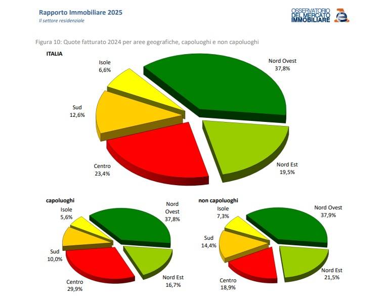 La parte del leone spetta al nord, con oltre il 57% del fatturato, seguito dal centro, con circa 27 miliardi e dal sud e dalle Isole con poco più di 22 miliardi.
