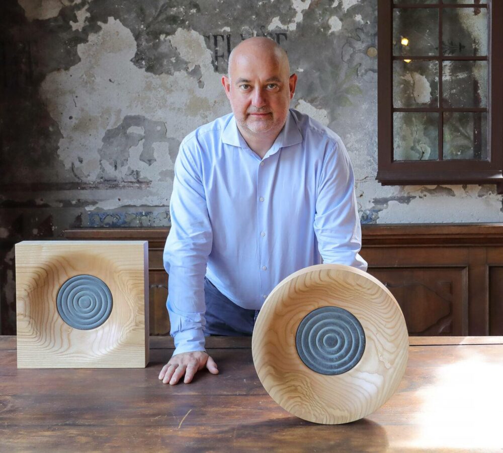 Fulvio Morella è tra i più noti artisti italiani contemporanei, già vincitore nel 2023 del Premio alla Carriera Alfredo d’Andrade e presente con i suoi lavori in collezioni internazionali al Victoria and Albert Museum di Londra e il Kunsthistorisches Museum di Vienna. Il primo ciclo di opere dell’artista lombardo è “Blind Wood”, costituito da quadri-scultura in legno e metallo e scritte in Braille che ripropongono monumenti famosi visti dall’alto: dal tempio di Delfi all’Arena di Verona, passando per il Pantheon di Roma.