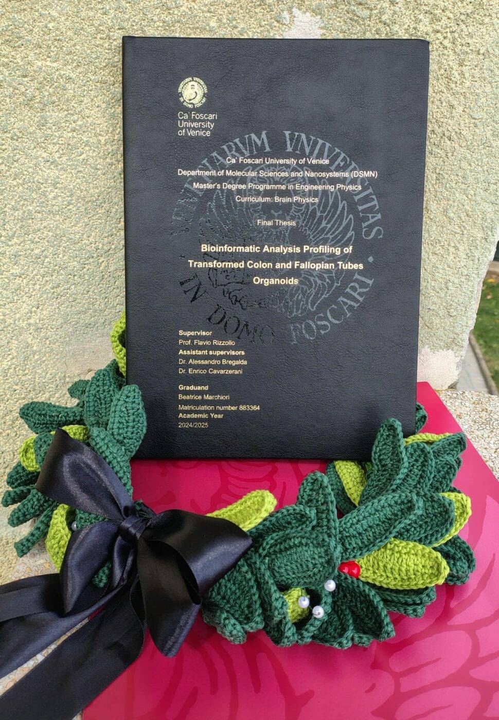 Una curiosità: la corona di laurea l’ha realizzata lei proprio all’uncinetto.