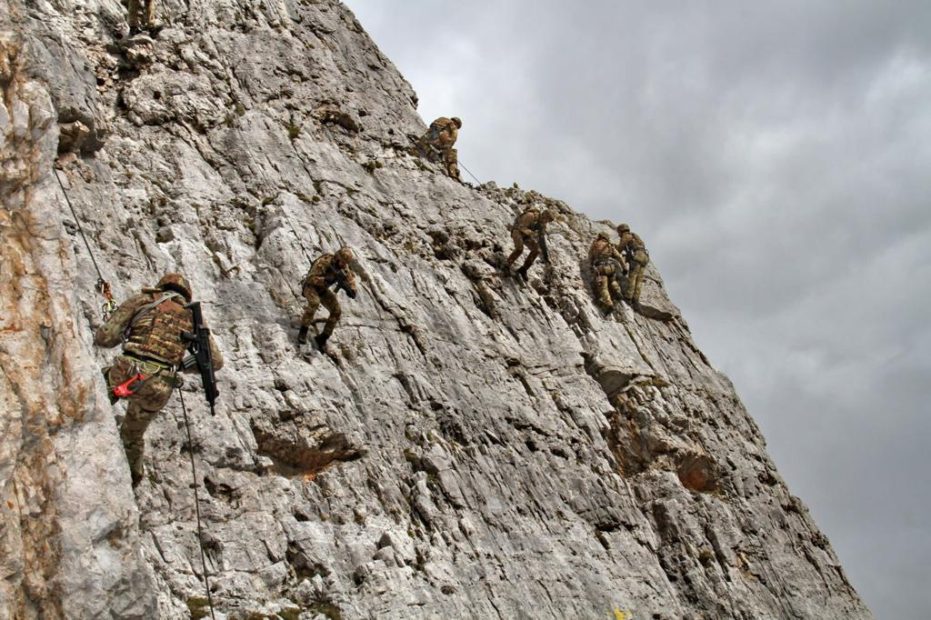 Si è partiti con l’arrampicata sulle pareti, con passaggi fino al 10° grado. Le stesse pareti hanno poi visto lo svolgimento, da parte di Alpini, Guardia di Finanza e Corpo nazionale del Soccorso alpino e speleologico, di interventi di soccorso integrato per lo sgombero di feriti, anche attraverso l’impiego di elicotteri muniti di verricello. Infine, è stata simulata un’operazione di esplorazione, fissaggio e aggiramento verticale di una posizione avversaria.