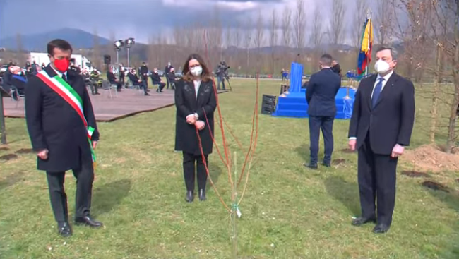 Draghi è stato presente anche alla seguente inaugurazione del “Bosco della memoria”, con il posizionamento del primo tiglio provenienti dalla Puglia tra i primi 100 degli 850 alberi che lo costituiranno entro l’autunno, preceduto dalle note di Paolo Fresu.