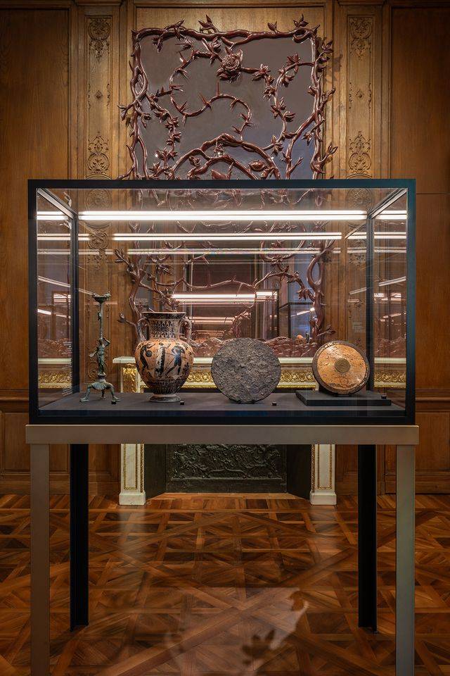 Il focus principale dell’esposizione è costituito dalla Tomba delle Olimpiadi di Tarquinia, per la prima volta esposta al di fuori del Museo Archeologico nazionale di Tarquinia e ricostruita al piano nobile della Fondazione Rovati.