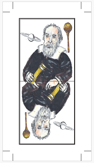 L’asso di coppe è un omaggio all’uva dei Colli Euganei, mentre quello di bastoni alla Rocca di Monselice. I fanti sono personaggi storici famosi come Tito Livio (spade), Andrea Palladio (coppe), Giotto (denari) e Galileo Galilei (bastoni), mentre i re ricordano grandi sovrani veneti: il doge veneziano, l’Antenore fondatore, Federico II e Ezzelino III da Romano”. Nel caso delle Carte Patavine la ricerca storica è stata più semplice, verificata postuma grazie alla collaborazione con lo storico Marco Chinaglia.