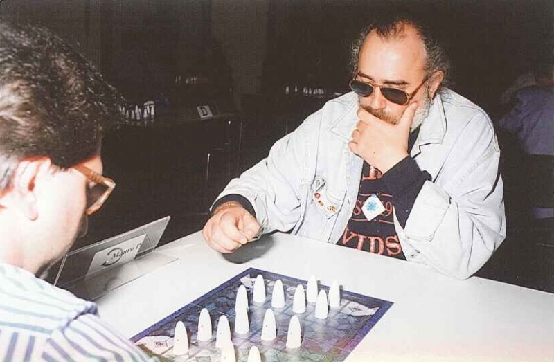 Quella per il gioco in tutte le sue forme, che lo porta ancora adesso, alla tenera e tonda età di 70 anni, a cercare il “divertimento intelligente” non solo giocando ma anche creando giochi (già tre prodotti, più nel cassetto quello che considera il suo capolavoro) e addirittura – fatto più unico che raro – diventando una carta da gioco lui stesso, con l’onore della pubblicazione de “Il Bau” e della sua caricatura in un gioco della ditta Venice Connection alcuni anni fa, un quartetto della serie “Adventure Cards”.