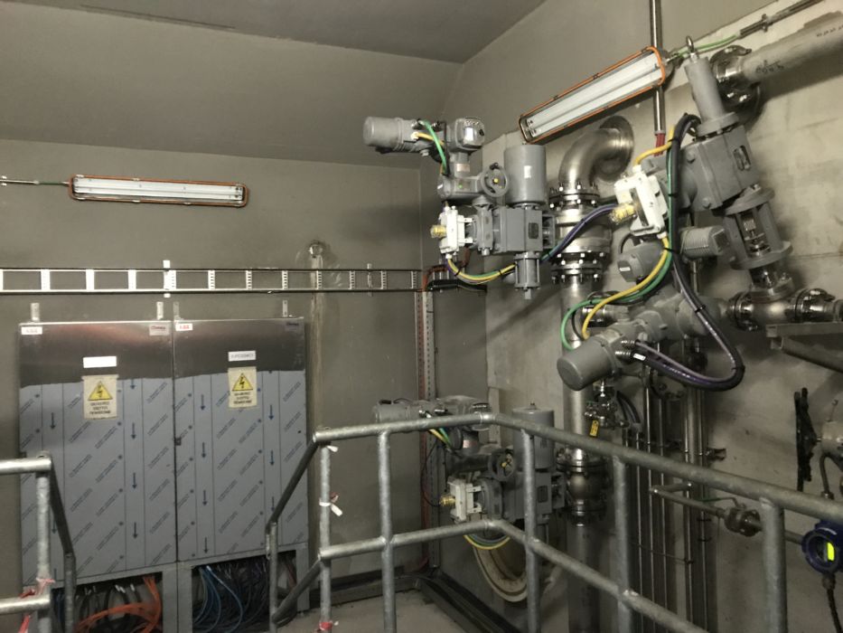 Percorrere il lungo corridoio sotterraneo sovrastato dai larghi tubi in acciaio degli impianti di aereazione, di condizionamento, antincendio e sbirciare tra le celle laterali scorgendo reticoli di valvole e manometri, sorta di enormi pistoni in acciaio inox che scopriamo invece essere i “famosi” tensionatori, quelli che collegano la paratoia alla base che connette maschio e femmina delle cerniere, è una continua scoperta.