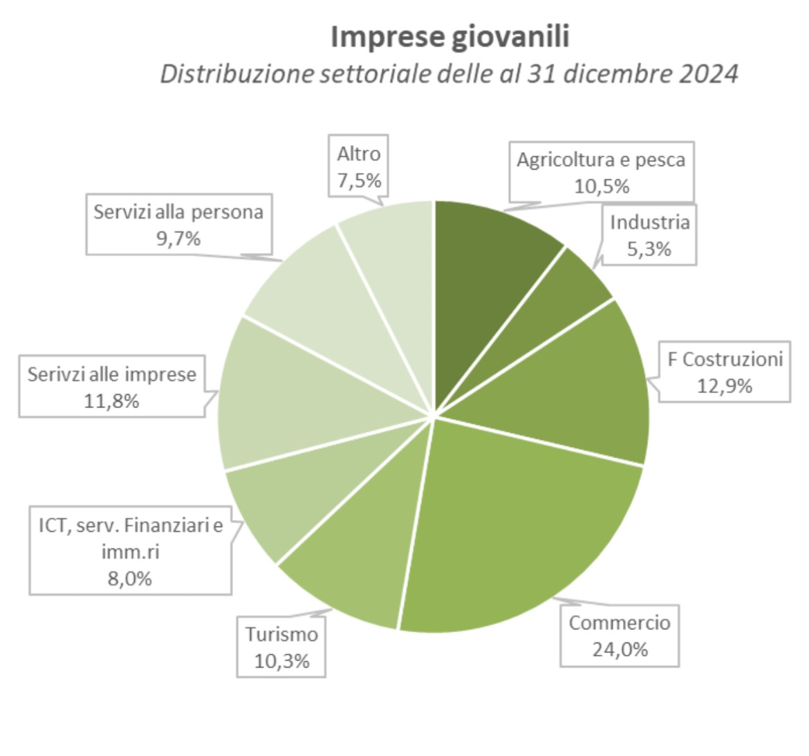 Oltre al digitale (le imprese Ict oggi rappresentano l’8% di quelle under 35, rispetto al 6,4% del 2014), i giovani imprenditori hanno puntato sui servizi alle imprese (addirittura +3,5%, quasi 2 mila imprese in più, nel decennio, con un peso sul totale delle imprese giovanili salito dall’8,7% all’11,8%), mentre resta sostanzialmente stabile (+0,06%) il numero di imprese agricole.