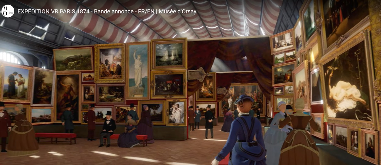 Ci sono la finestra aperta attraverso la quale si vede l’artista che dipinge la tela sul cavalletto, un viale con persone a passeggio, la sala di un museo carica di opere e pubblico che le ammira, l’ex studio del fotografo Nadar dove si inaugurò il 15 aprile 1874 la prima mostra di impressionisti. Non sono opere reali: la realtà virtuale e ricostruzioni in 3D entrano nel Museo d’Orsay.