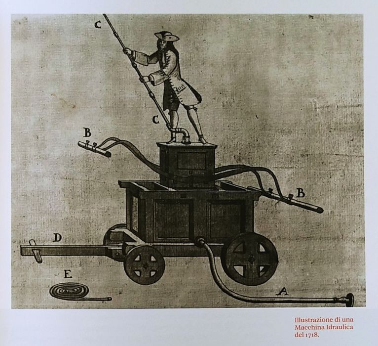 La prima volta che a Venezia si sentì parlare di “macchine Idrauliche” per spegnere gli incendi fu verso la fine del ‘600, ad opera del cosmografo Padre Vincenzo Maria Coronelli del Convento di San Nicolò della Lattuga ai Frari, attuale sede dell’Archivio Storico di Venezia.
