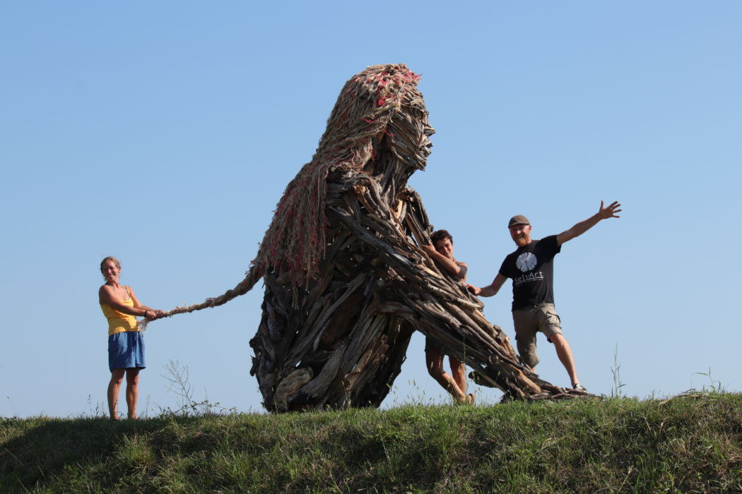 Parco che proprio quest’anno ha iniziato a prendere vita, grazie al lavoro della ditta Arborete. È per loro merito che entra in gioco Sara Celeghin, dell’associazione Teatro Invisibile e promotrice nel padovano del progetto UrbArt: un percorso arte-natura nei quartieri periferici della Città di Padova realizzato da dodici sculture lignee permanenti, scolpite da ceppaie destinate altrimenti all’abbattimento. Conosciuta la Certosa, Sara ha constatato che anche in quel contesto lagunare si sarebbero potute realizzare delle sculture secondo l’idea dell’upcycling, ovvero usando materiale di scarto per nobilitarlo a forma d’arte.