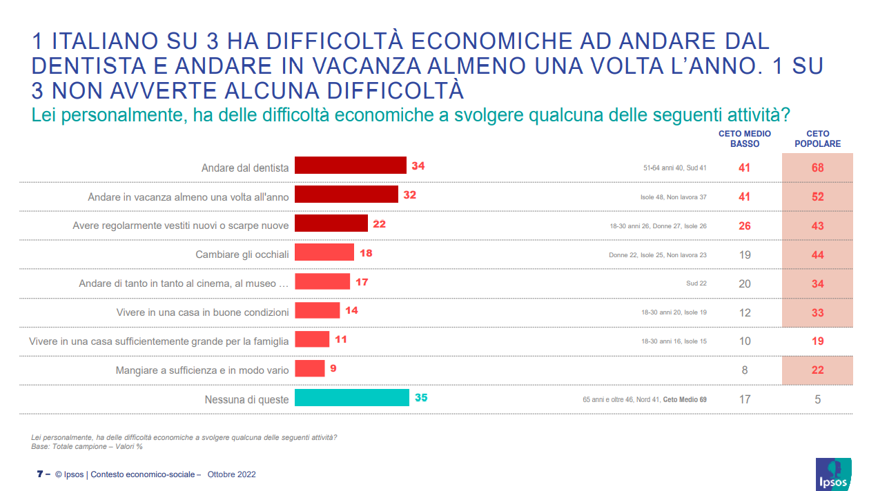 Di questi, il 39% del totale afferma di avere un reddito che non permette lussi, quindi ancora nel ceto medio, ma in declino.
