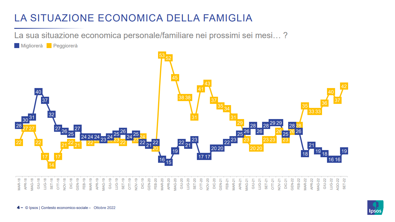 Tra i motivi di peggioramento, al primo posto si posizionano gli stipendi bassi (per il 55%, con una punta del 59% per i ceti medio-bassi), poi la precarizzazione del lavoro (49%), le tasse troppo elevate (42%), la corruzione (42%), Seguono, entrambe col 27%, l’incapacità dei partiti di difendere le persone economicamente più fragili e l’aumento del gap retributivo tra manager e lavoratori.
