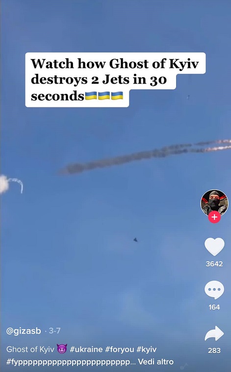 Quanto al “Ghost of Kiev”, le immagini sono risultate provenire dal videogioco Digital Combat Simulator.