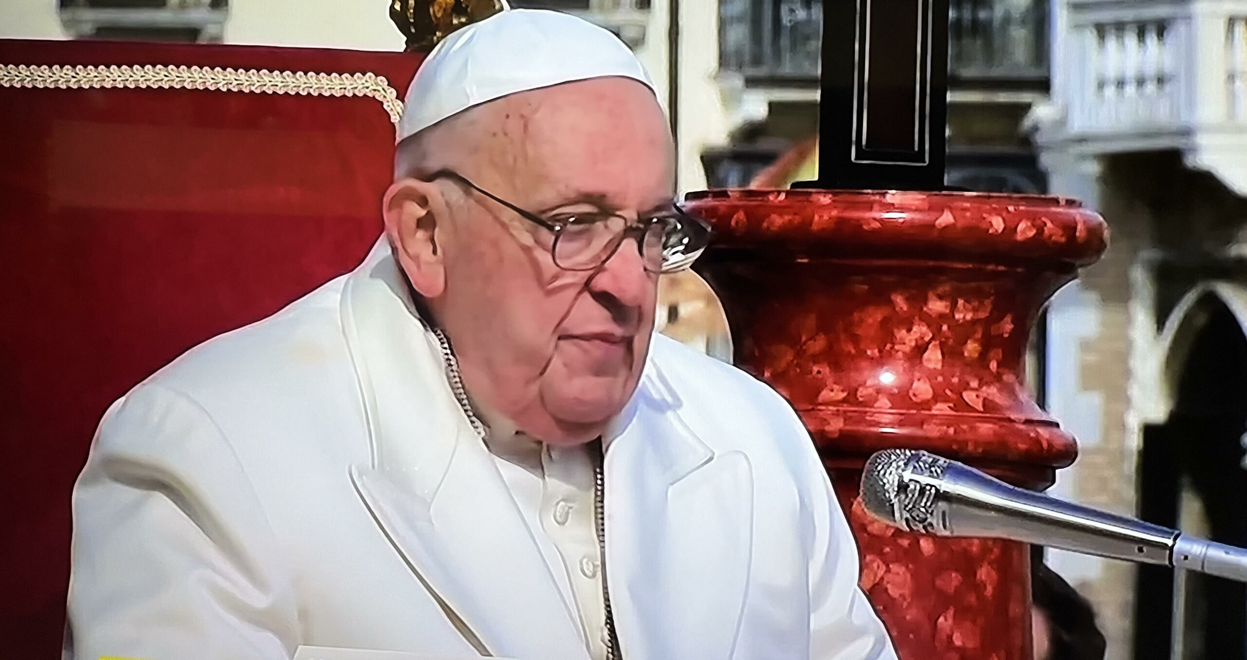 Mentre il Pontefice era in Laguna, l’annuncio della premier Meloni in un video: Bergoglio sarà a giugno all’evento organizzato in Puglia