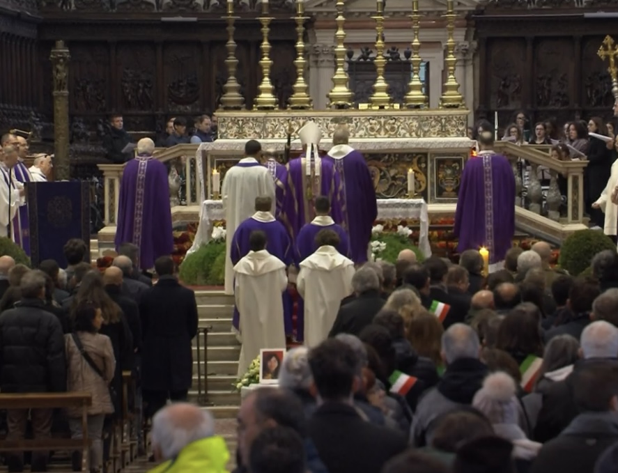 Ma erano almeno 7 mila, provenienti da tutta Italia, con moltissimi giovani, coloro che hanno voluto essere presenti all’esterno, seguendo le esequie sui maxischermi e pregando insieme per lanciare un messaggio che vada oltre il dolore.