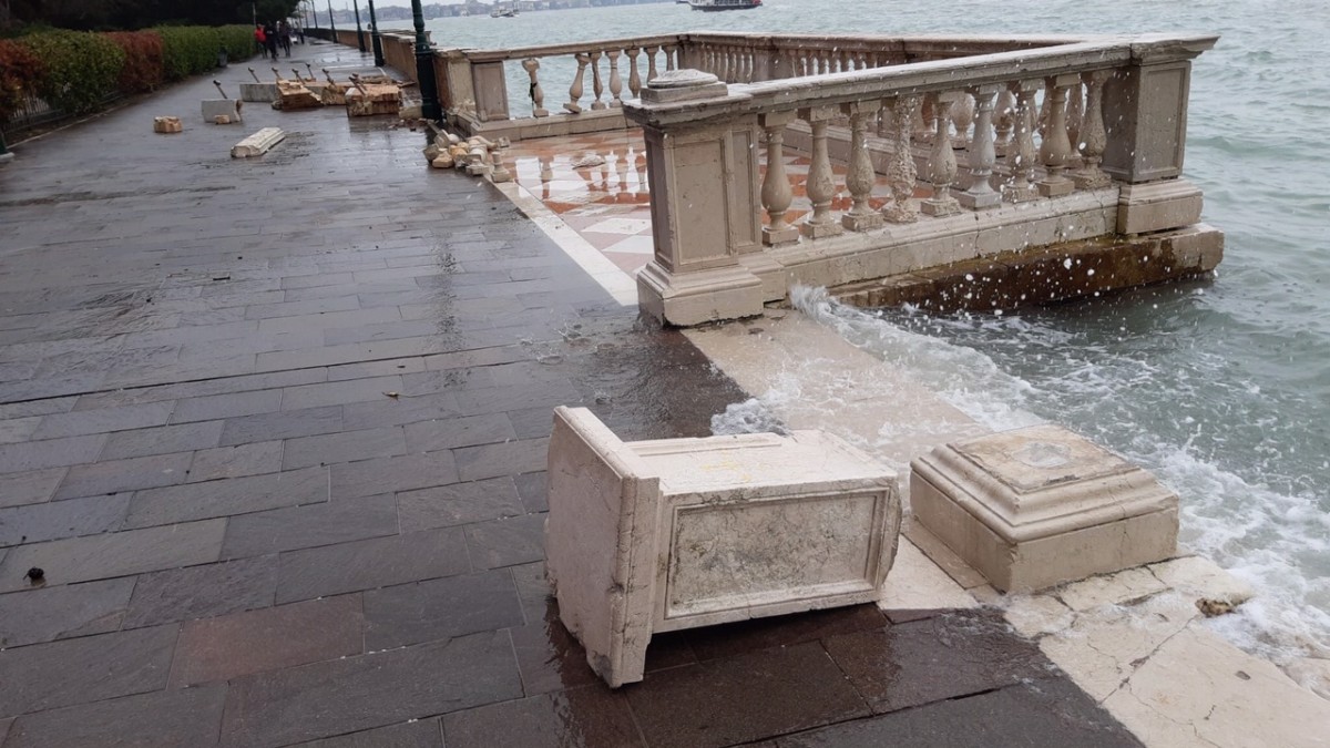 Gondole e imbarcazioni sono state scagliate sulle fondamente, addosso alle vetrine dei negozi, un’edicola è stata spazzata via dal vento, molti imbarcaderi del trasporto pubblico sono stati divelti.