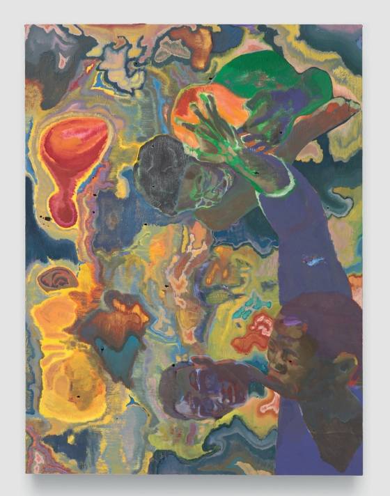 Michael Armitage, Untitled, 2024, Pinault Collection. Oil on Lubugo bark cloth. Photo : Kerry McFate -Courtesy the artist and David Zwirner