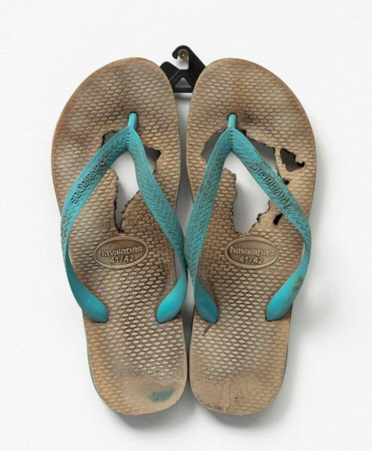Paulo Nazareth, senza titolo [Encruzihada], 2022- plastica e gomma delle infradito 30 x 22 cm (11 3/4 x 8 5/8 in)