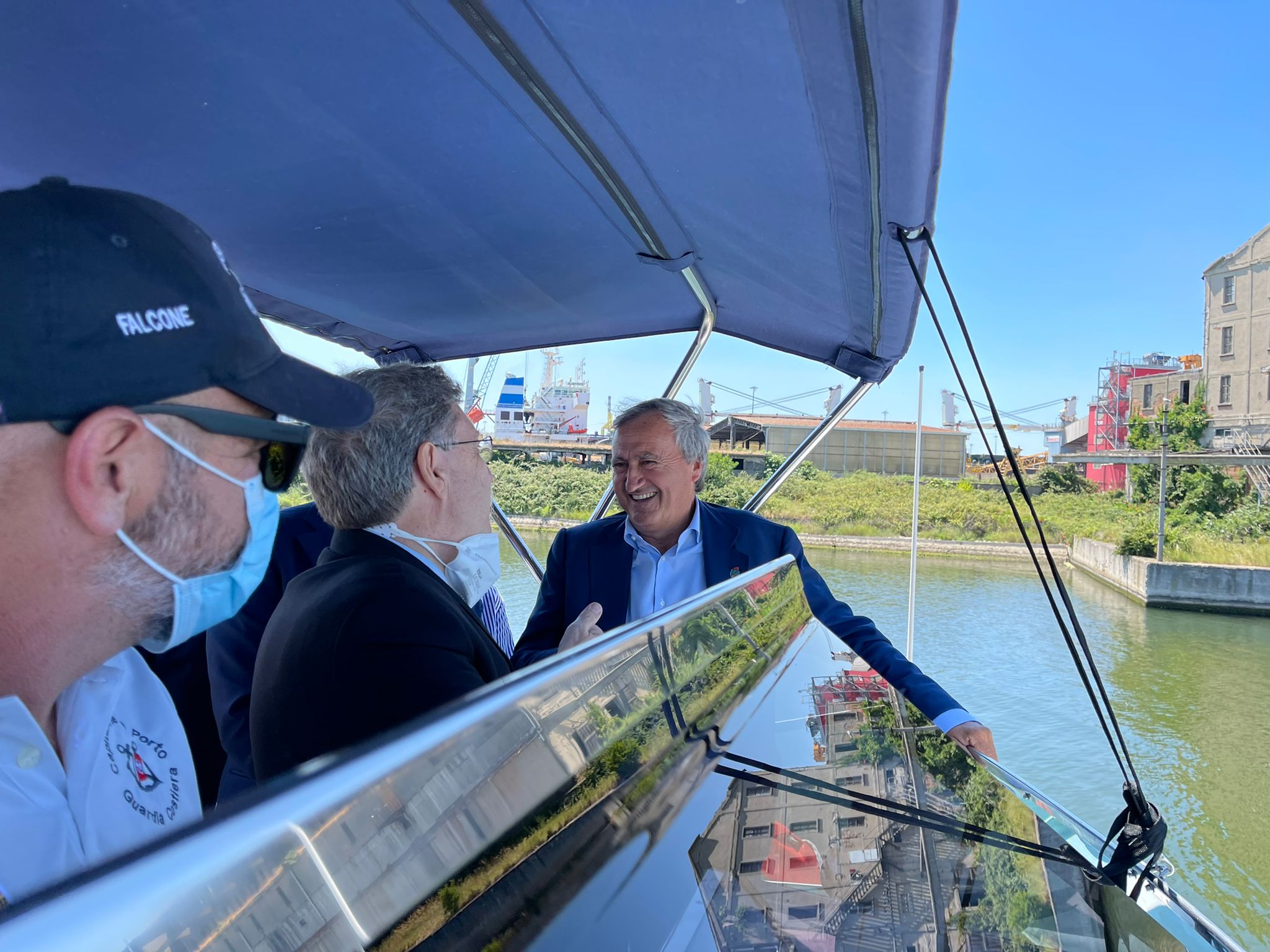 Sull’imbarcazione della Capitaneria di Porto di Venezia, assieme al sindaco Brugnaro, al comandante della Capitaneria Piero Pellizzari e alla propria delegazione, il ministro ha percorso il canale Vittorio Emanuele III , visitato la Marittima e il Canale nord.