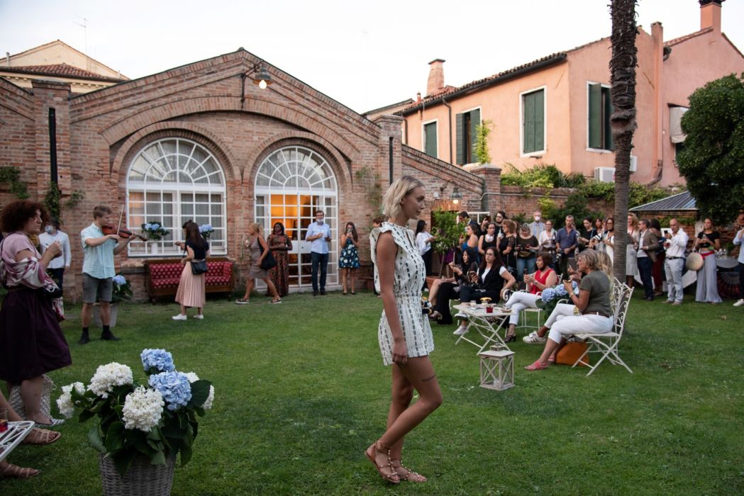 L’evento svoltosi nel giardino della Giudecca, dove erano esposte anche alcune opere di Giovanni Pinosio giovane scultore del filo di ferro, è solo il primo di una lunga serie di proposte moda che si svolgeranno negli hotel, nei giardini “segreti” di Venezia e negli atelier nel mese di ottobre, in occasione dell’undicesima edizione della Venice Fashion Week, con eventi dal vivo e on line.