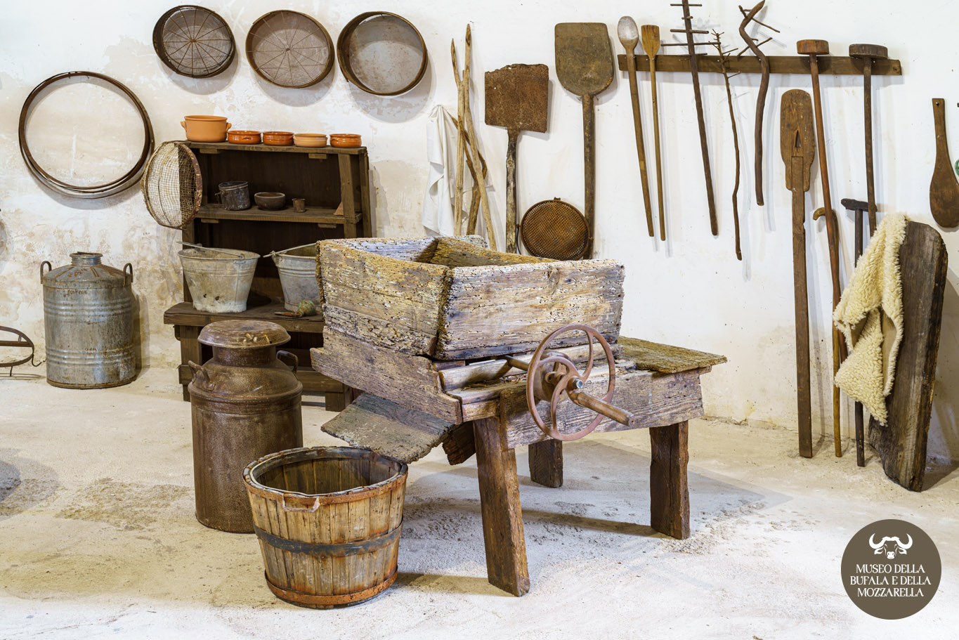 Ma al suo interno, tutto è dedicato a lei: la bufala campana, di cui viene raccontata la storia attraverso le testimonianze che possono dare gli attrezzi che nel tempo sono stati usati per produrla, le etichette che ne hanno accompagnato l’affermazione in Italia e nel mondo, le fotografie delle varie tappe di crescita di un latticino che non ha eguali.