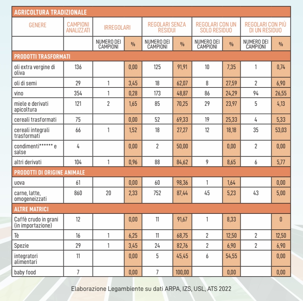 Il nuovo rapporto annuale di Legambiente e Alce Nero: aumentano i campioni regolari, ma preoccupano i multiresidui