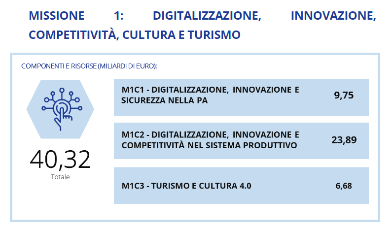 Il Pnrr si articola dunque in 6 “missioni”. Ad esempio, per la “transizione digitale” il primo obiettivo è offrire connettività omogenea ad alta velocità in tutto il Paese, ma anche effettuare una trasformazione digitale della Pubblica amministrazione con la strategia “cloud first”, rafforzare la sicurezza informatica, la cittadinanza digitale e il miglioramento delle competenze digitali della forza lavoro.