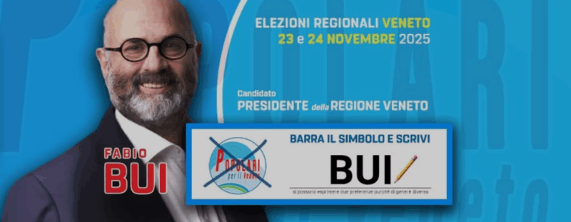 I Popolari per il Veneto sostengono Fabio Bui, 1965, originario di Mestre, ex presidente della Provincia di Padova.