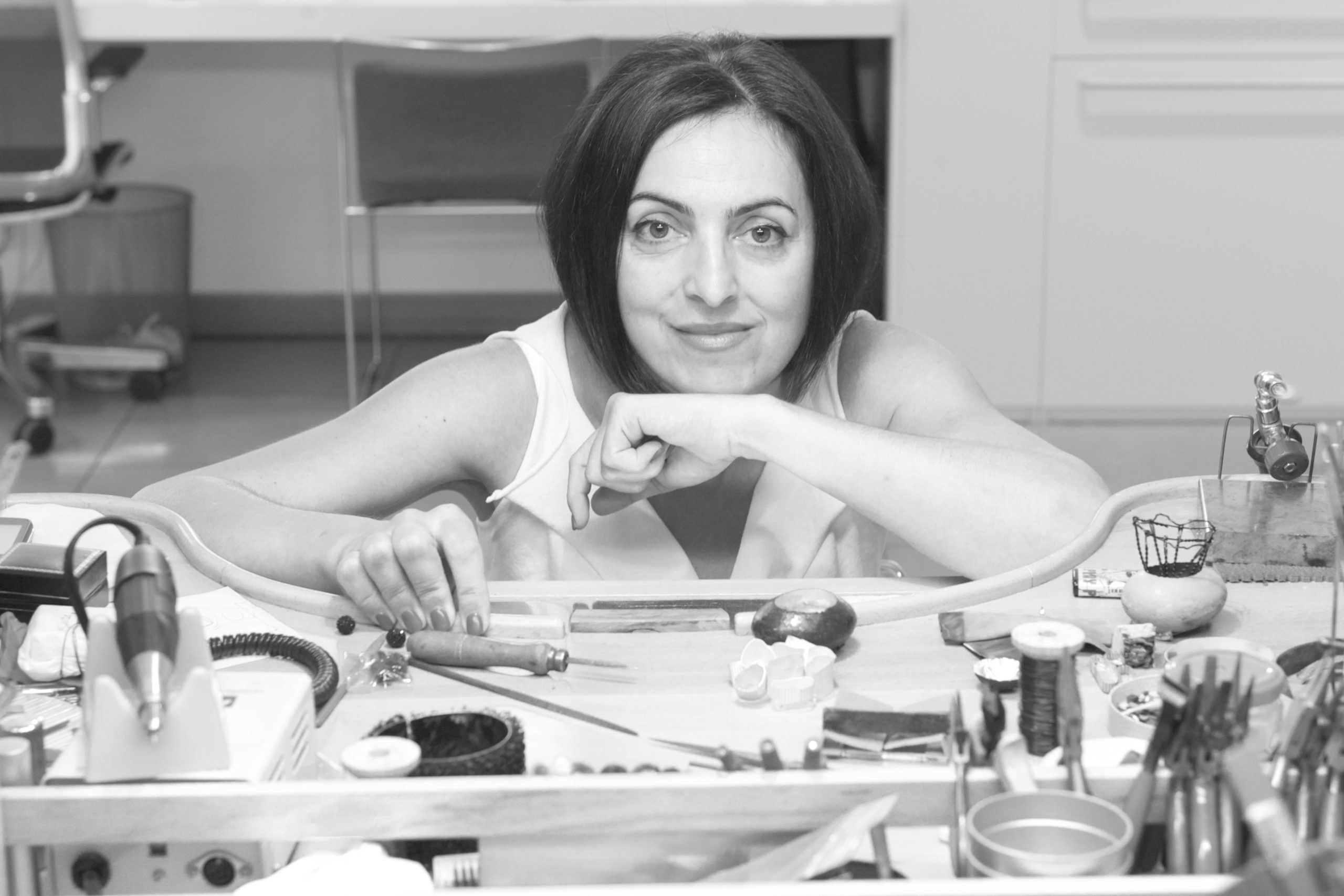 Il lavoro di Annamaria Zanella, invece, racchiude l’origine della vita e le stelle in una perla nera di 9,9mm di diametro. “The Cell è una palla di argento sbalzato con un piccolo foro e rivestita di niello, una lega di argento, rame, piombo e zolfo, già conosciuto dagli antichi egizi e riscoperto dalla scuola orafa padovana. All’interno c’è del lapis e sopra una sabbia di microsfere di vetro dorato. L’essere umano è veramente ‘figlio delle stelle’; l’opera è un omaggio all’origine e al mistero della vita, all’elemento che accomuna gli esseri umani e alla cappella degli Scrovegni di Giotto. Una cellula con all’interno il cielo stellato”.