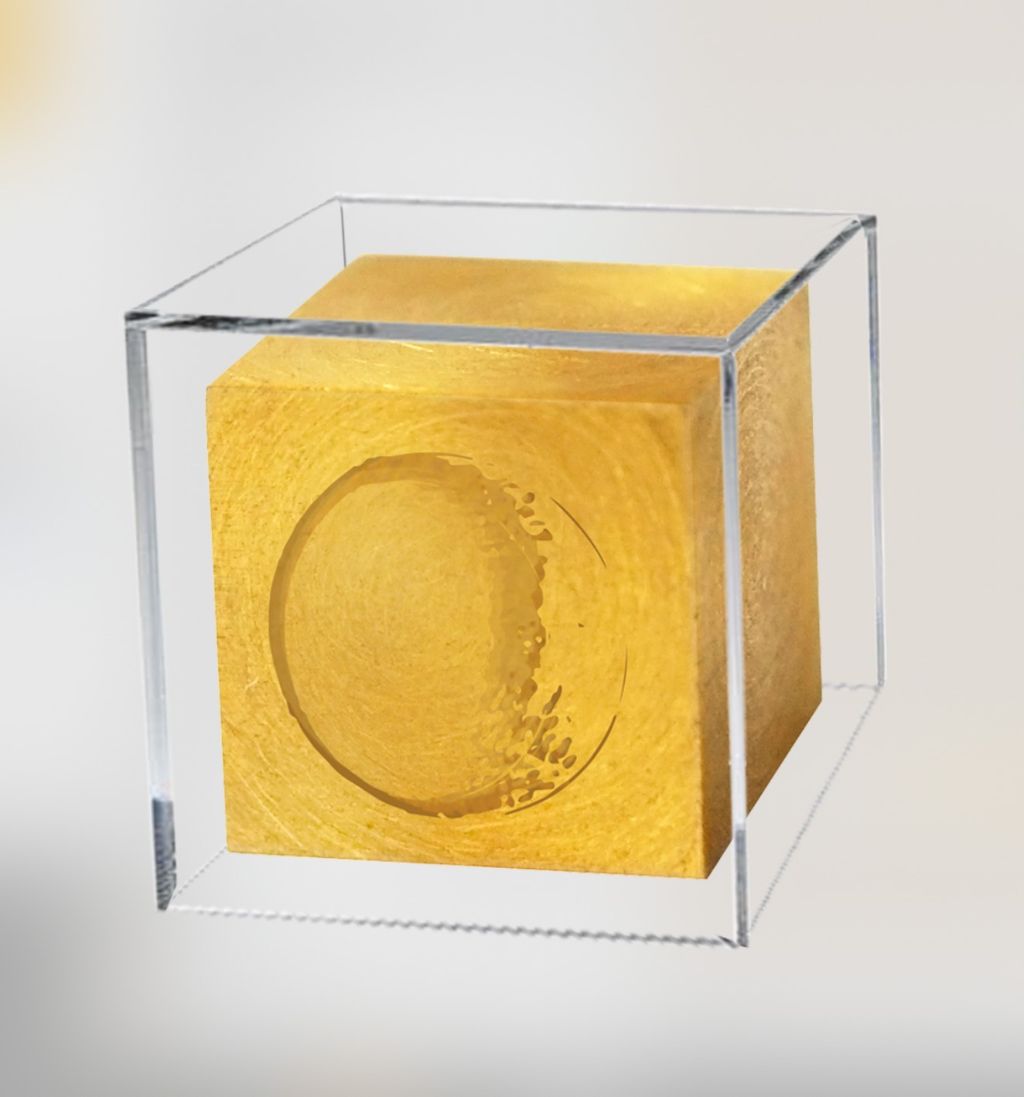 Ai partecipanti al concorso è stato chiesto di creare delle piccole opere che raccontassero la storia dell’uomo agli avventori sulla Luna, umani e non. “Per noi orafi è stato più semplice, da un certo punto di vista, perché siamo abituati a pensare in piccolo per i nostri gioielli – spiega Renzo Pasquale – .La parte difficile era riportare una grande idea nello spazio di 1cm. Io ho voluto omaggiare la mia città, Padova, con un piccolo cubo d’oro. Sopra ho potuto incidere, grazie a un macchinario laser di precisione di un’azienda in provincia di Vicenza, il viso di Galileo Galilei, il logo dell’università dove insegnò per 18 anni, un profilo dell’Italia con un puntino rosso che indica la locazione della città, le fasi lunari e la mia firma”.