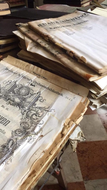 Al  Conservatorio Benedetto Marcello una cinquantina di allievi ed ex allievi hanno lavorato alacremente per tirare fuori dagli scaffali i libri raggiunti dall’acqua. Hanno separato le pagine una per una alternandole con degli asciugoni di carta, li hanno imbustati in sacchi di nylon e consegnati a una ditta specializzata di Bologna incaricata di eseguirne il restauro. Con la speranza di riuscire a salvarne il più possibile, soprattutto perché l’inchiostro idrosolubile dei manoscritti fino al Settecento si scioglie a contatto con l’acqua. Se questa parte di patrimonio inestimabile sarà  recuperata, il merito sarà anche loro.