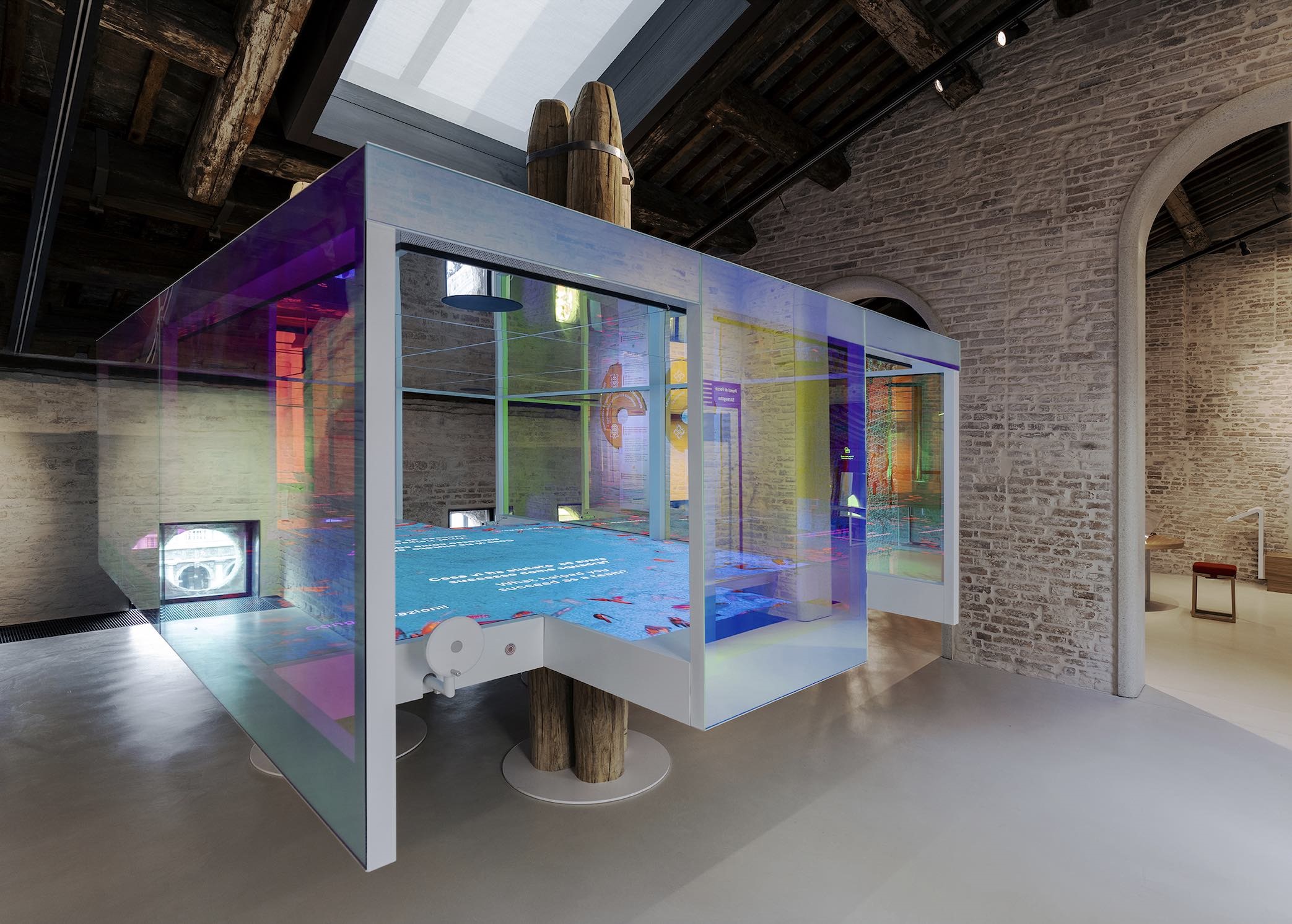 “Il legame di Venezia con il teatro e le maschere -è stato spiegato-  ha ispirato inoltre l’installazioneTeatro Veneziano”, nata da un’idea di Davide Rampello, che accoglie i visitatori: le marionette in legno di Arlecchino, Pantalone e Colombina, animate da una tecnologia sofisticata, interagiscono con i visitatori rispondendo alle loro domande sulla storia della città in più lingue.