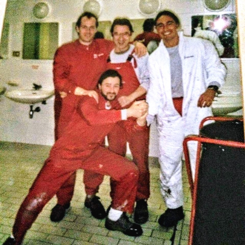 Gli uomini del Moro di Venezia. Al centro, l’armatore con Raul Gardini e lo skipper Paul Cayard