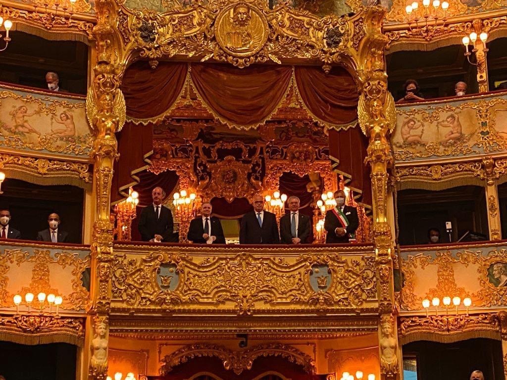 Un simbolo di Venezia nel mondo che ha entusiasmato gli ospiti, intrattenuti dalle musiche di Rossini, Mascagni, Verdi e Puccini eseguite dall’orchestra diretta da Daniele Callegari e impreziosite dalla voce del soprano Anna Pirozzi.