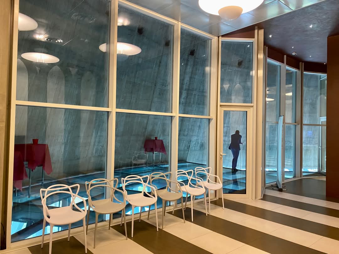 Lo si capisce bene percorrendo i suoi spazi ascoltando l’audio, di una decina di minuti, del piano Osservatorio 360°, che racconta il paesaggio economico e culturale che dall’alto della torre si vede dalle 30 vetrate panoramiche circolari.