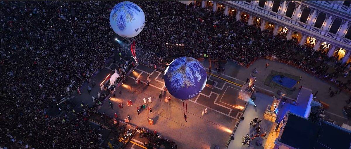 Il Gran Ballo di Carnevale con Bridgerton, ideato in collaborazione con Netflix per il lancio della quarta stagione della celebre serie, ha trasformato la piazza in un palcoscenico romantico: danzatori professionisti in sontuosi costumi ottocenteschi hanno ballato al ritmo delle colonne sonore più iconiche, mentre due performer volteggiavano sospesi tra luce e architettura grazie a una spettacolare danza verticale su eliosfere.