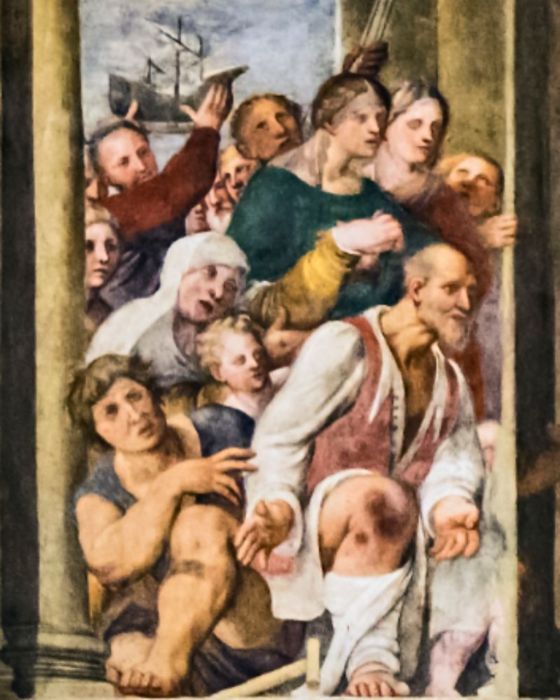 Vi è, infatti, l’opera San Rocco risana gli appestati  di Jacopo Robusti, considerata come una delle prime rappresentazioni di un ospedale nella storia dell’arte, eseguita con un realismo e un’attenzione ai dettagli eccezionalmente moderna. Mentre, in alto, su delle tavole attribuite al Pordenone, raffiguranti San Martino e San Cristoforo, è rappresentata una processione di appestati che vuole mettere in luce le atrocità del morbo, come la perdita degli arti.